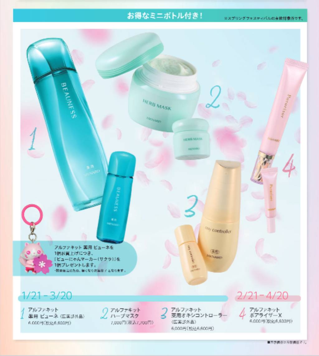 メナードで大人気のアイテムが、お値段そのままで「持ち運びに便利なミニサイズ」が付いてくるとってもお得なキットが期間限定で登場します!